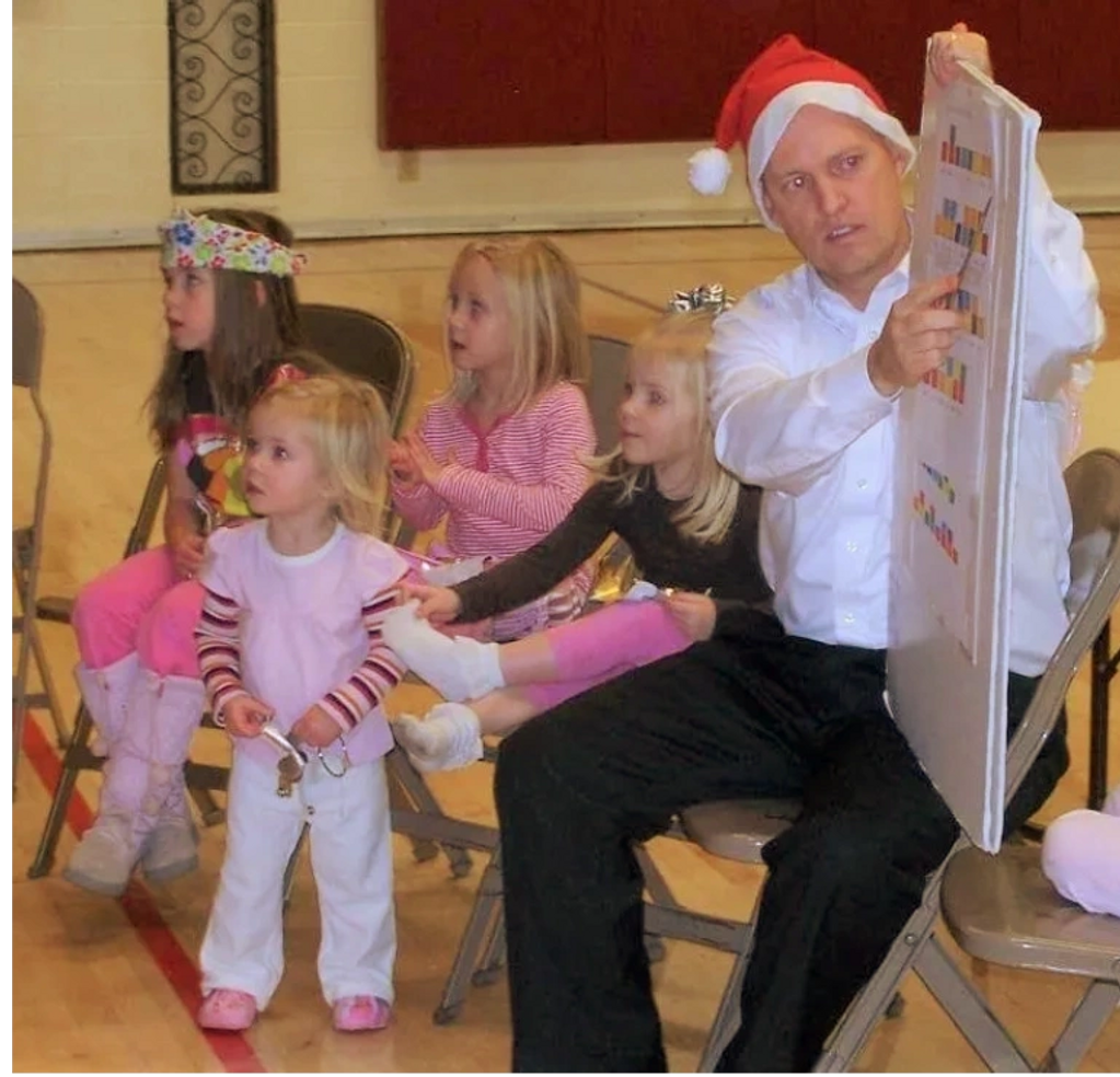 We had just come out with the Play-Along DVD and were following along with a laptop we had set on the ground playing the DVD.